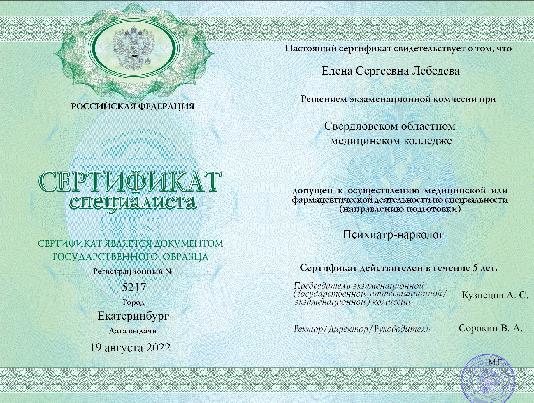 Елена Сергеевна Лебедева врач нарколог клиники доктора Стукаловой в Лисках